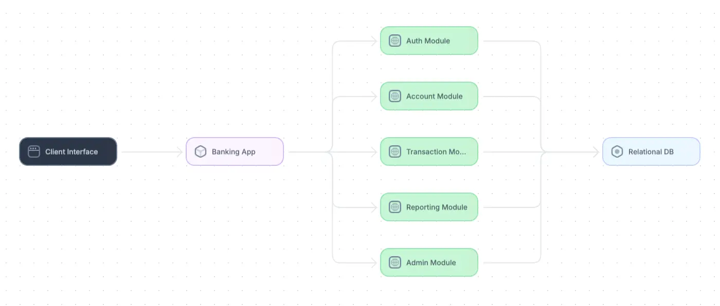We will use a monolithic architecture for its simplicity and relative ease of deployment. All functionalities will be contained within a single codebase and share a unified database.