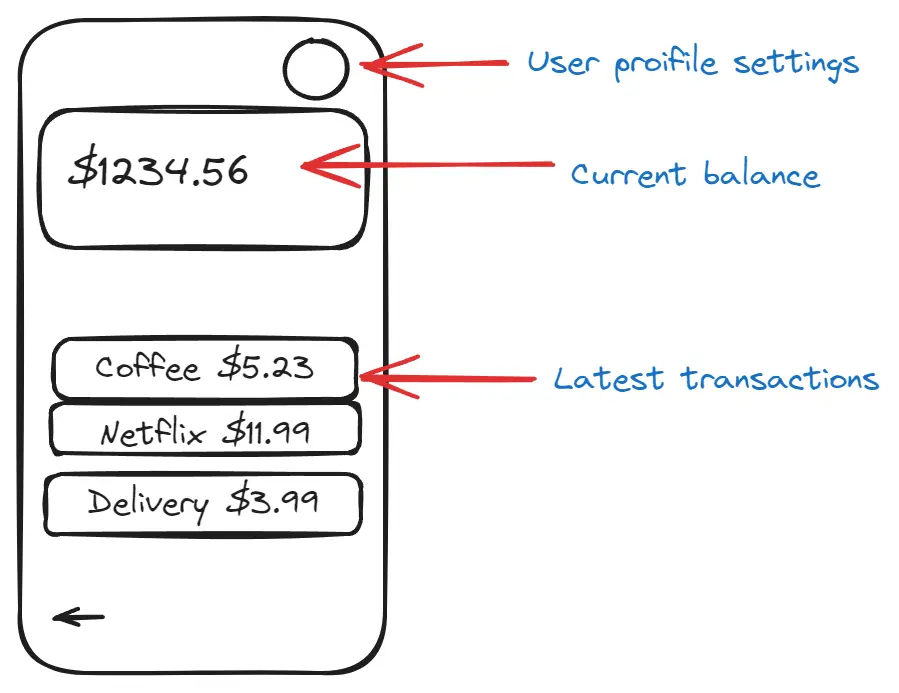 - Dashboard: The user’s home page, where users see their current balances and their most recent transactions