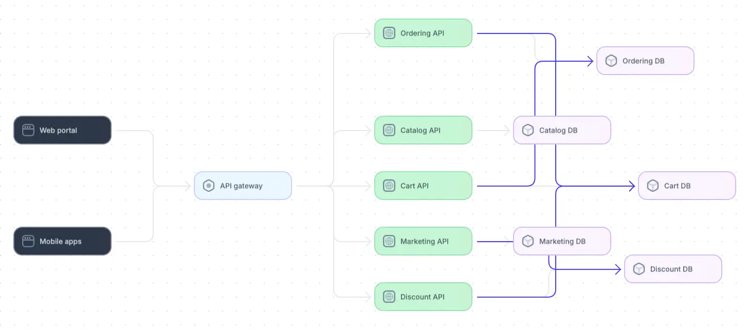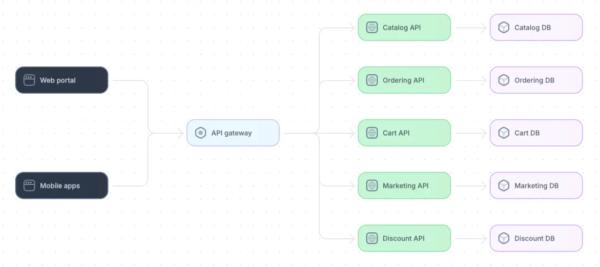 As an example, consider a large-scale e-commerce platform built on a microservices architecture. Initially, each service is isolated and communicates via well-defined APIs to ensure modularity, scalability, and ease of maintenance, as shown below.