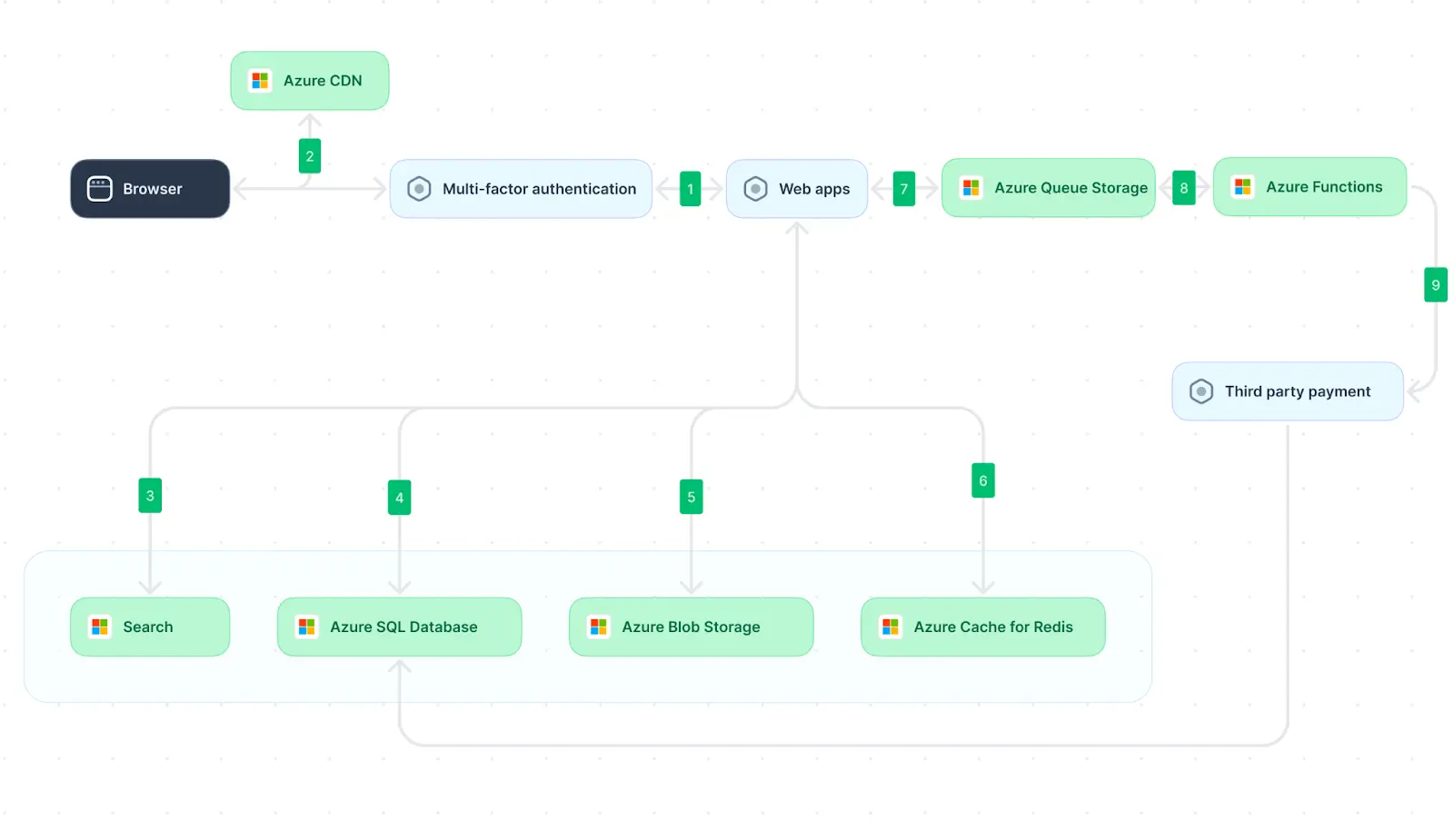 The complexities of distributed systems increase based on use case and performance requirements. For example, a distributed system architecture for genome research or AI training would be much more complex than that for a small application with a limited user base. However, we give an example architecture of a global e-commerce store to give an overview of the layers that may be present.