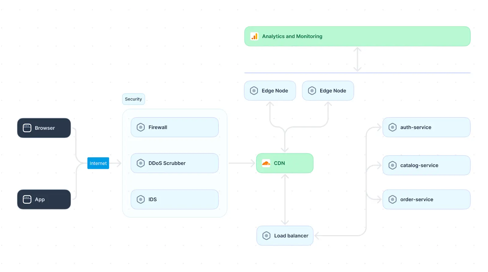 Implementing a distributed security layer protects against common threats such as DDoS attacks and unauthorized access. Security layers commonly include global firewalls, intrusion detection systems (IDS), and distributed denial-of-service (DDoS) mitigation services. Distributed monitoring and analytics tools are employed to gain insights into user behavior, system performance, and potential issues. This involves implementing distributed logging systems, real-time monitoring dashboards, and analytics services to actively track key performance indicators (KPIs) and user engagement.