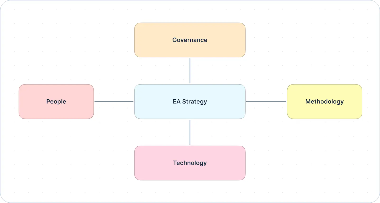 - Technology: Facilitates the creation of the systems, infrastructure, and software needed to accomplish EA strategy goals.