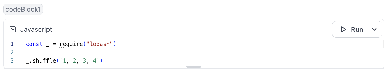 Notebook code blocks now support both import (ESM) and require() (CommonJS/UMD), making it easier to structure your code modularly and integrate with widely used JavaScript libraries.