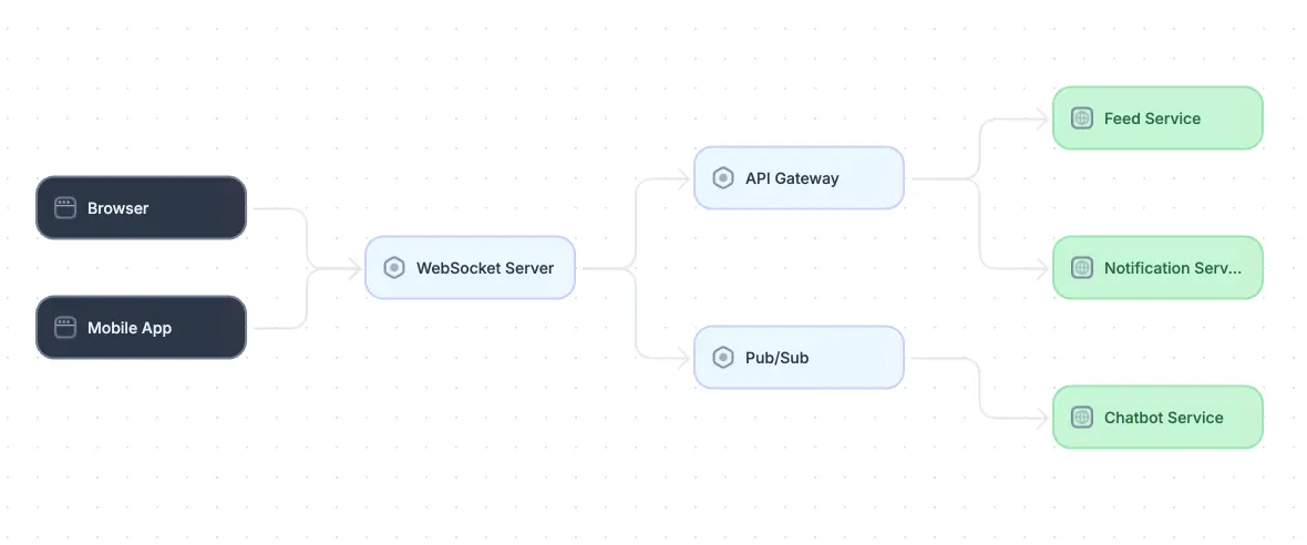 Example social media platform architecture using WebSockets (adapted from source)